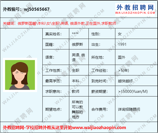 推荐理由:俄罗斯外教,经验丰富,可以教舞蹈,也可以教英语