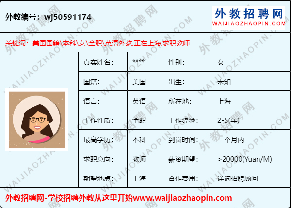 推荐理由:美国外教,在上海,求职上海职位