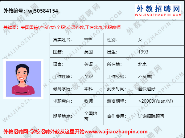 | 外教人才编号 | wj50584154 |