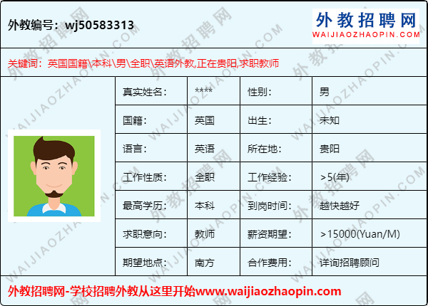 推荐理由:英国外教,经验非常丰富,求职南方职位