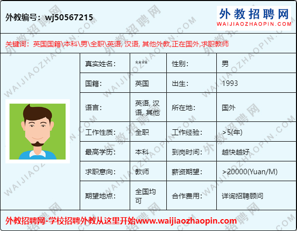 推荐理由:英国外教,经验非常丰富,在国外,本科,求职不限
