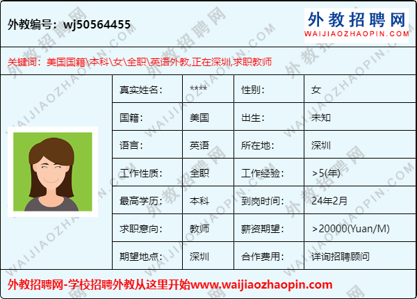推荐理由:美国外教,在深圳,经验非常丰富,求职深圳职位