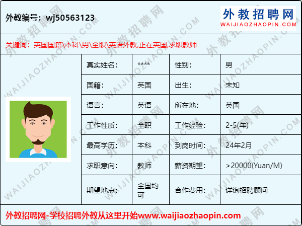 | 外教人才编号 | wj50563123 |