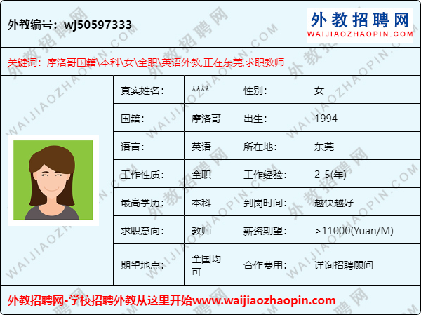 推荐理由:摩洛哥外教,英语教师工签,能教幼儿园小学和初高中